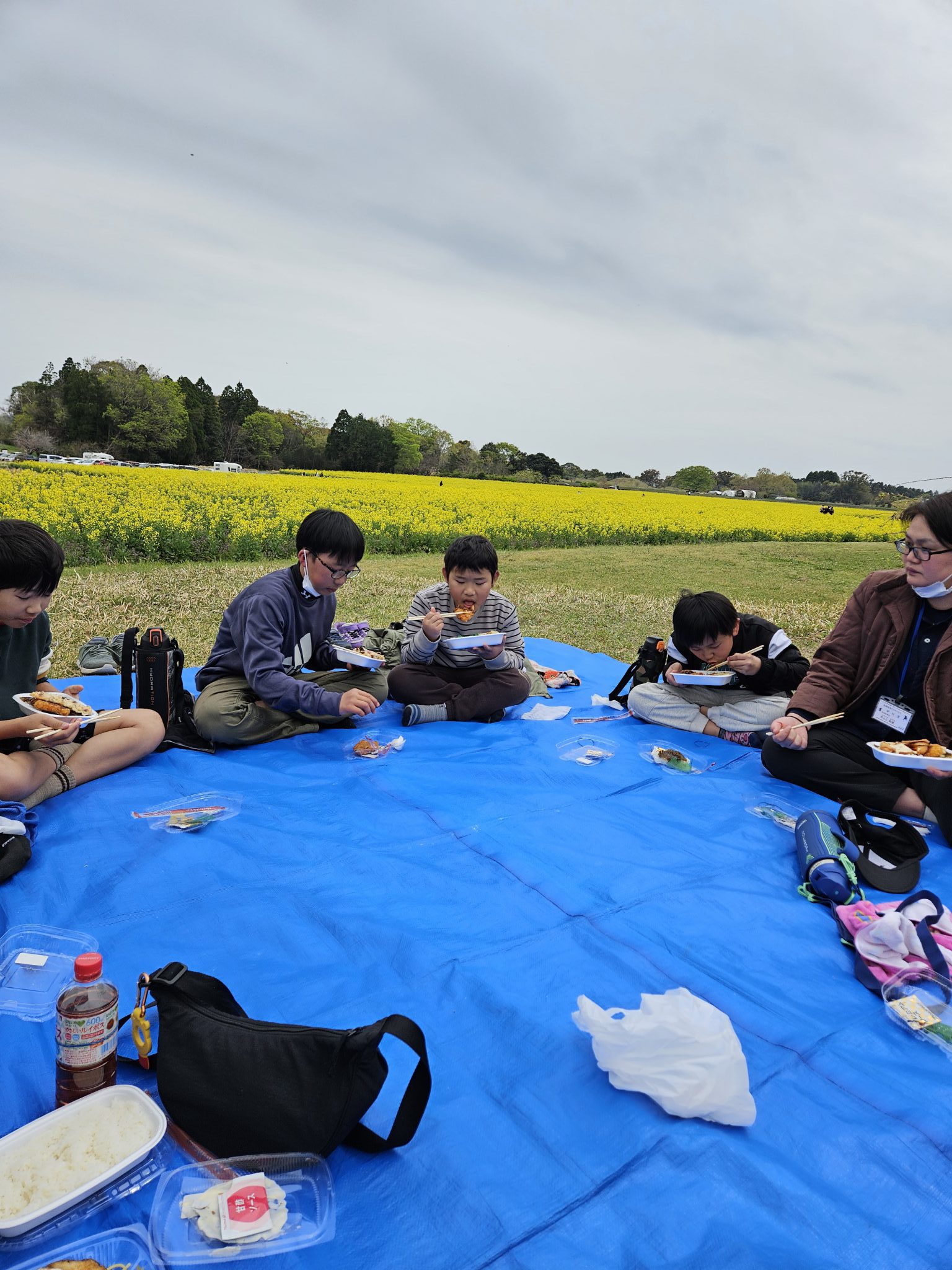 2025年4月8日 お花見(4月5日・土) こんにちは☆彡 アリスの牧野です。4月5日(土)春休み最後のお出かけで、西都市にある「このはな館」へお花見に行ってきました。現地では、お天気にも恵まれ、温かい陽気の中で昼食を食べて、昼食後は、シートの上でゴロゴロと日向ぼっこをしたり、園内を散策したりしています。このはな館周辺では、「菜の花」「桜」が満開で黄色・ピンク色の鮮やかな色に囲まれてとても見ごたえのあるお花見になりました。