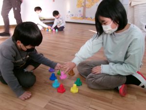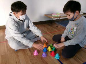 今回は、ソーシャルスキルを育む活動として「積み重ねブロック」を使った活動を行いました。