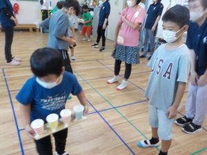 しかし、何度も繰り返し、練習をしていく内に、全部紙コップに入る子どもたちが増えてきて、集中してやっていました。