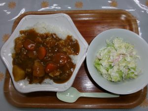 久しぶりの調理の活動で、メニューは、みんな大好き「カレー」を作り、副菜で、「サラダ」も作りました。